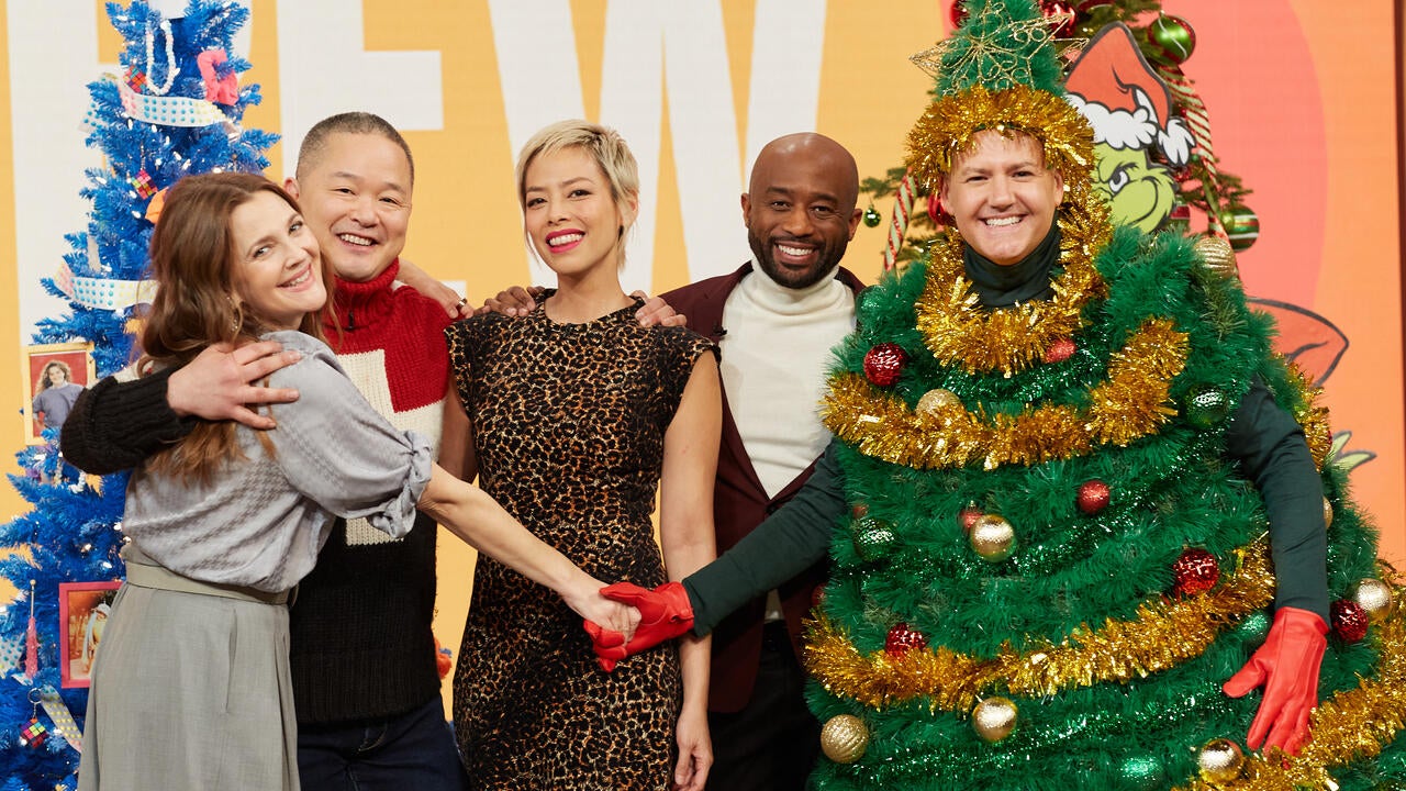 Drew-Crew members Pilar Valdes, Danny Seo, and Mikel Welch join Drew and Ross Mathews for a holiday tree competition!