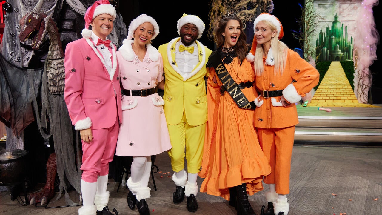 The Drew Crew (Drew Barrymore, Mikel Welch, Pilar Valdes, and Zanna Roberts Rassi) go head-to-head in a Halloween-themed décor challenge. Hosted by Ross Mathews and judged by the audience, each Drew Crew member must show off their door décor inspired by their favorite movie or TV show.